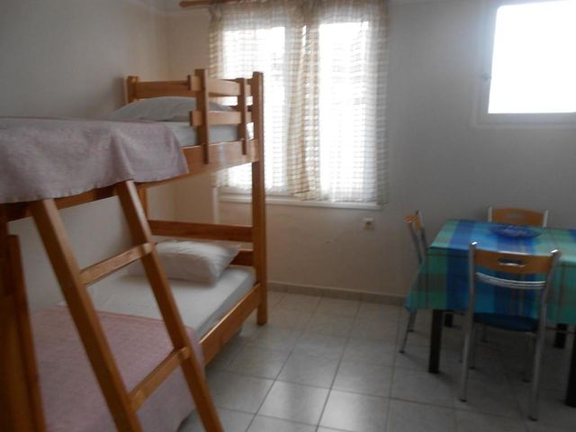 AIGLI studio is a studio with two 2 rooms . There a double bed and bunk beds . It can accommodate 4 -5 people .There is also a fully equipped , a kitchen A/C , WC and TV.